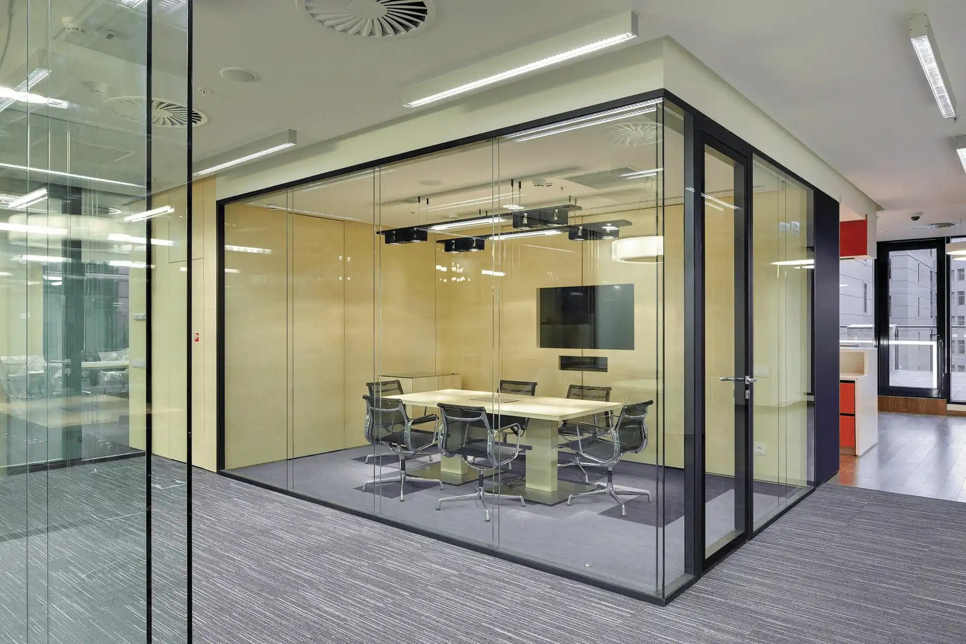 - Звукоизоляция — комфортная рабочая среда для переговоров и концентрации сотрудников